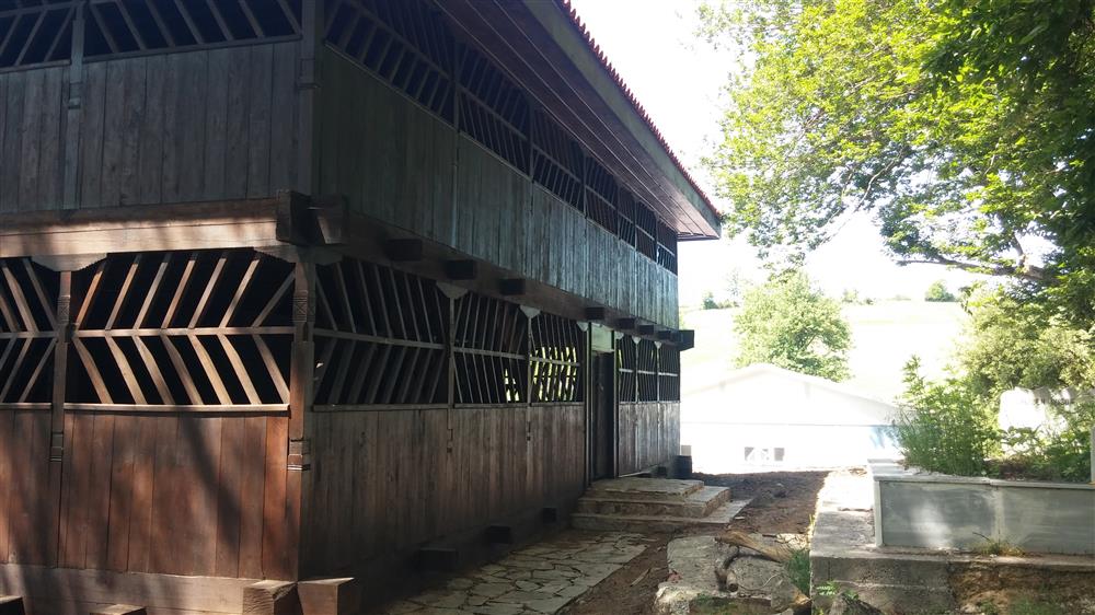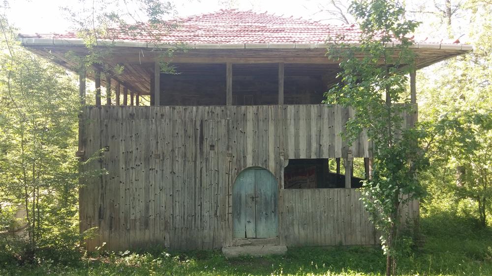 The wooden mosque standing on the stones has a square planned structure and covered with wooden balustrades. The mosque has no minarets and built by a special technique by interlacing logs without nail.